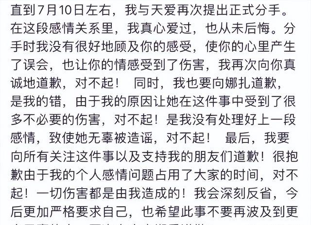 便两任女友连撕的徐开骋,火速为自己辩解,并发文回顾了和张天爱的恋爱时间线,并承认错误向张天爱、娜扎道歉。