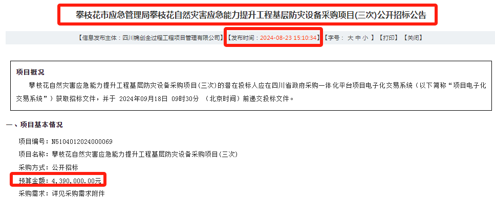 昨天,《四川政府采购网》发布两则《行政处理结果公告》,披露了《攀枝花市自然灾害应急能力提升工程基层防灾设备采购项目》,先后遭到两次财政监督的案例。
