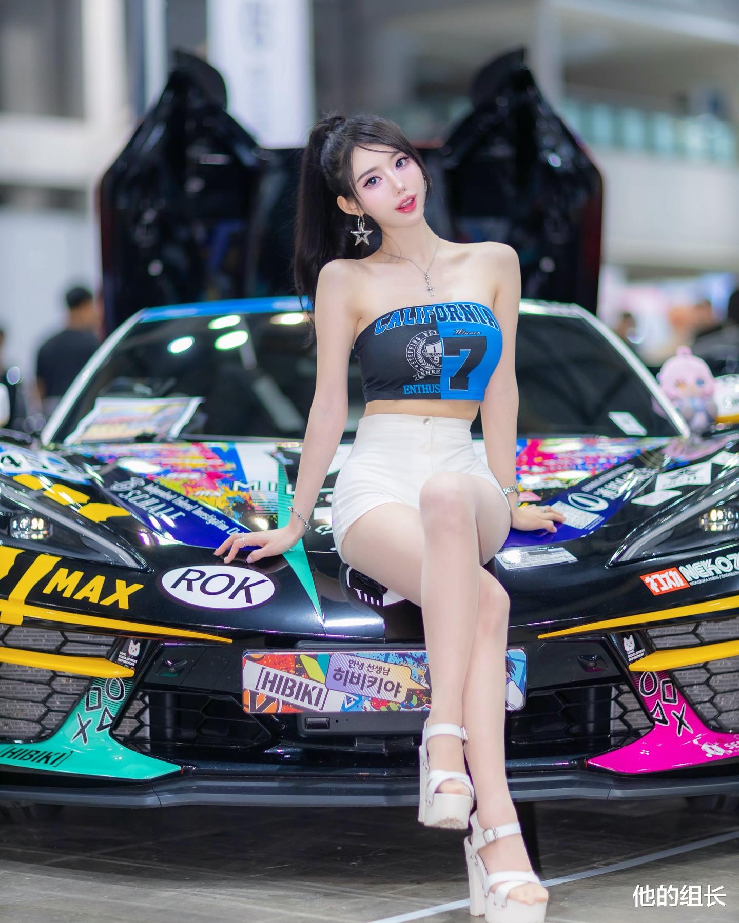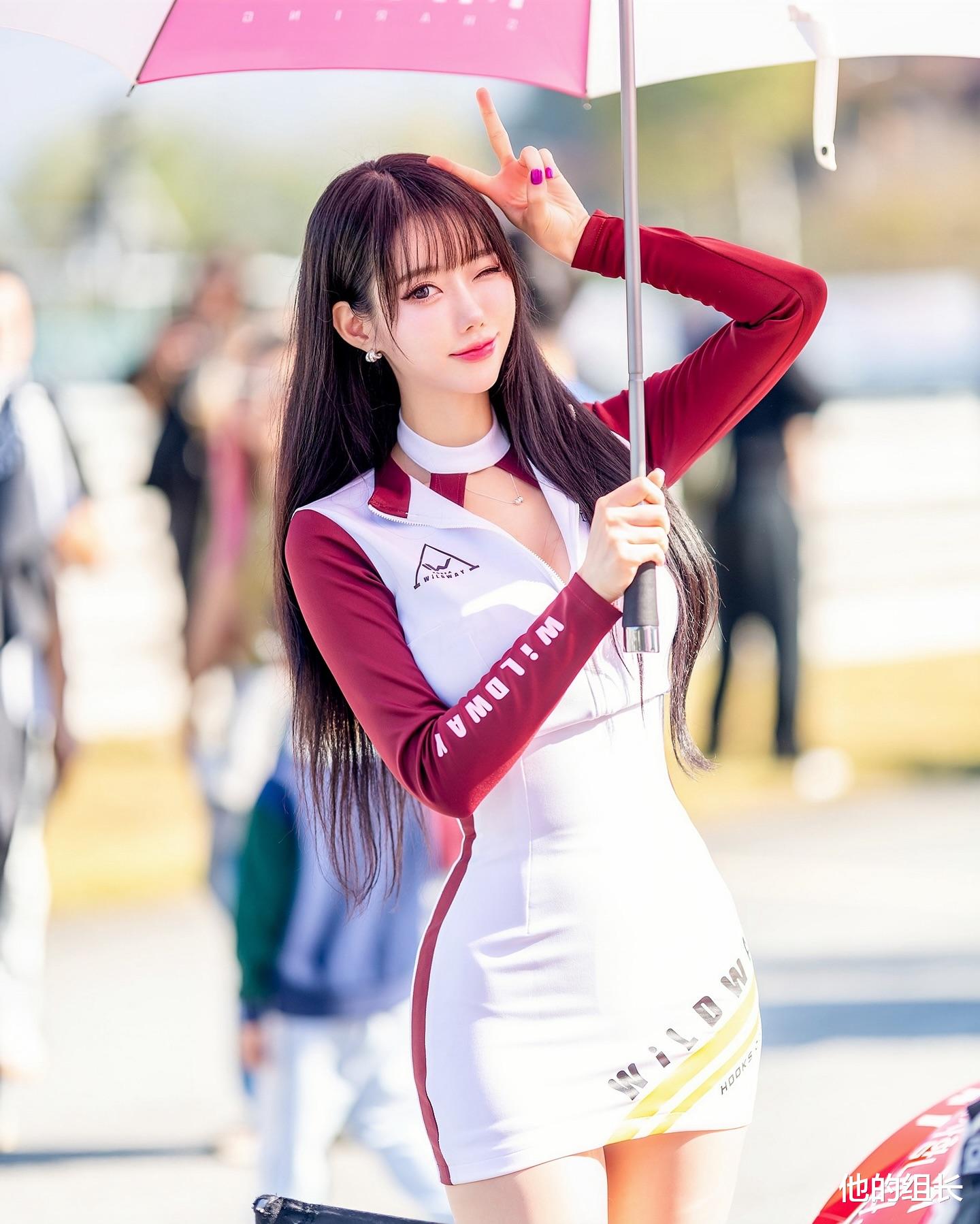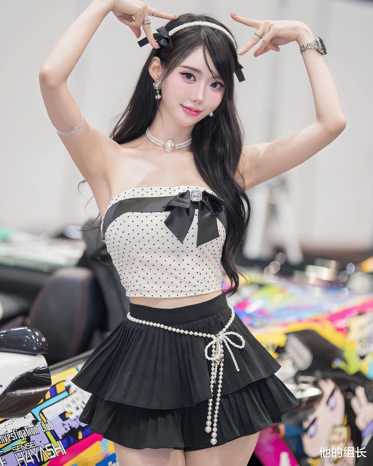 她身着一件黑色的皮质外套,简约而不失大气。外套上的银色扣子和腰带巧妙地增添了整体的层次感,同时也展现了她对细节的极致追求。黑色的短裙搭配得恰到好处,不仅突出了她修长的双腿,更在视觉上拉长了身材比例,显得她更加高挑迷人。