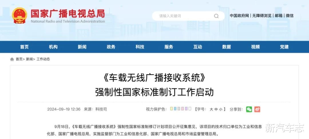 今年9月,工业和信息化部等部门公开征集对《车载无线广播接收系统》强制性国家标准制修订计划项目的意见。“车载无线广播接收”将有望成为在中国销售汽车的强制性国家标准。也看出我们国家在这方面也十分重视。