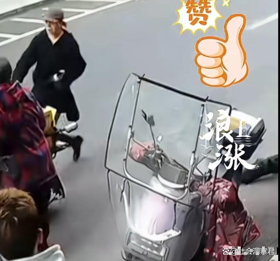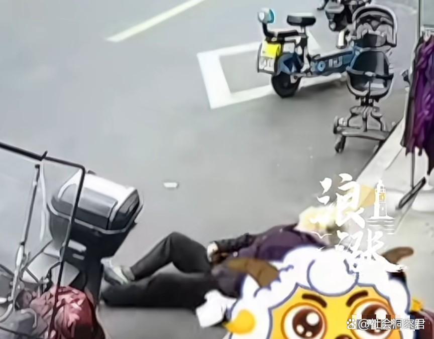 老奶奶的身后是人行道,铺的水泥砖坚硬无比,老人头着地那一刻,隔着屏幕都让人感觉到疼。