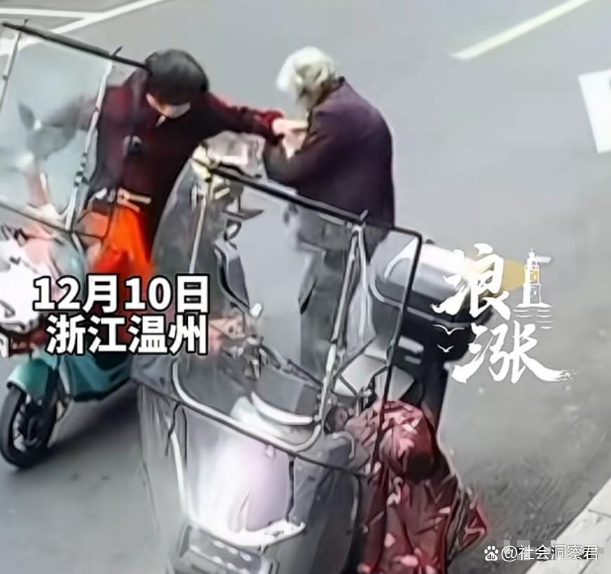 直到大妈坐上三轮车准备离开时,老奶奶才踉踉跄跄地走到跟前。就在老奶奶试图夺回纸箱的那一刻,大妈竟一把将老奶奶推倒在地。