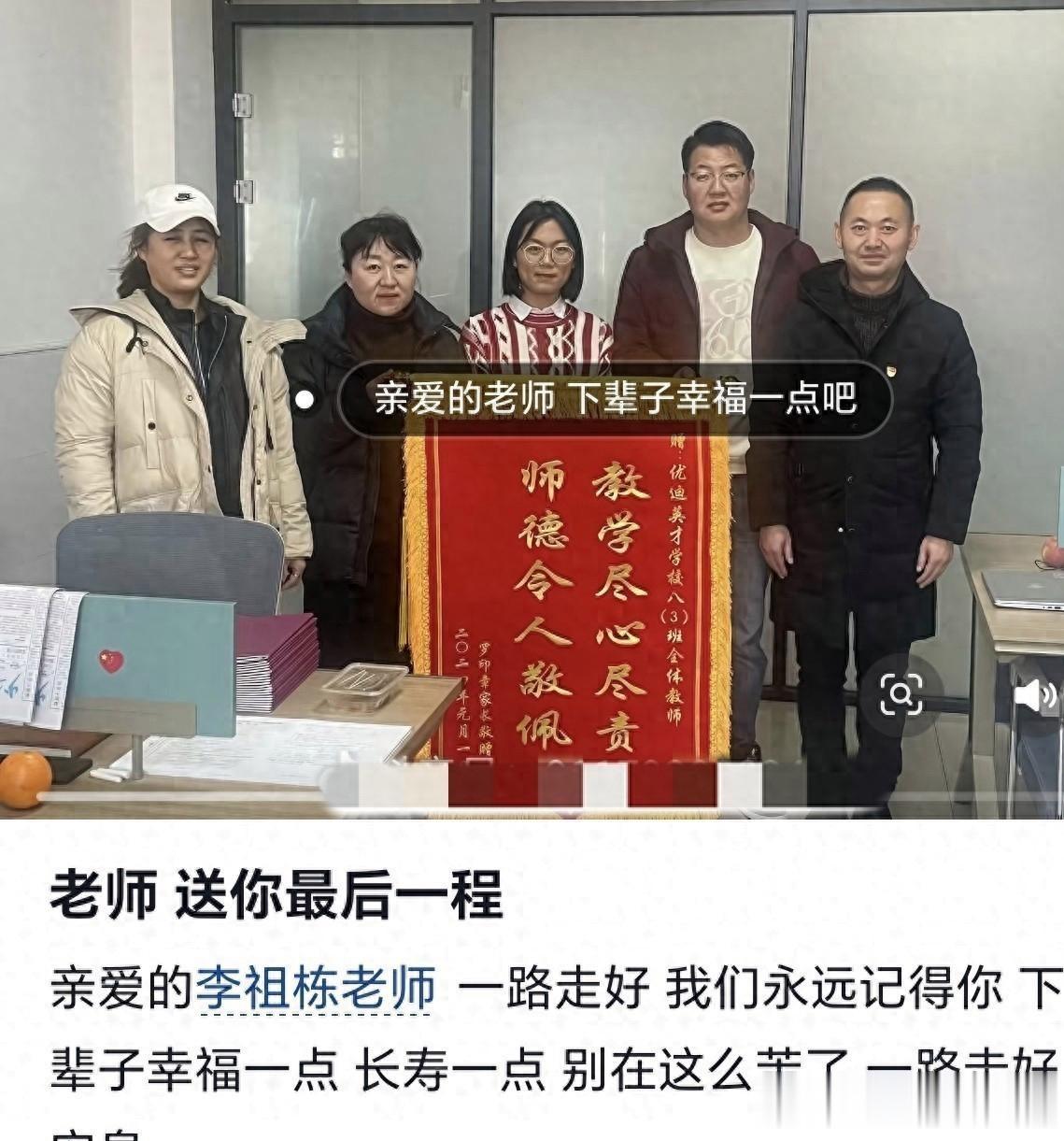 在他去世之后,学生泪目送别:老师送你最后一程,亲爱的李祖栋老师,一路走好,我们永远记得你下辈子幸福一点,长寿一点,别在这么苦了!
