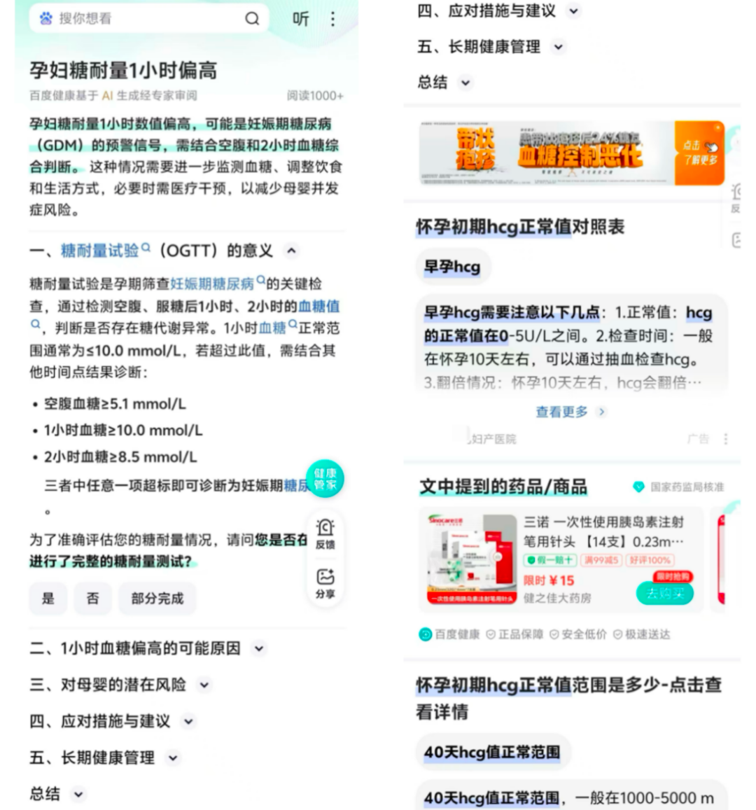 其中百度搜索,我输入的是“孕妇糖耐测试指标偏高”,这是百度返回的搜索结果。