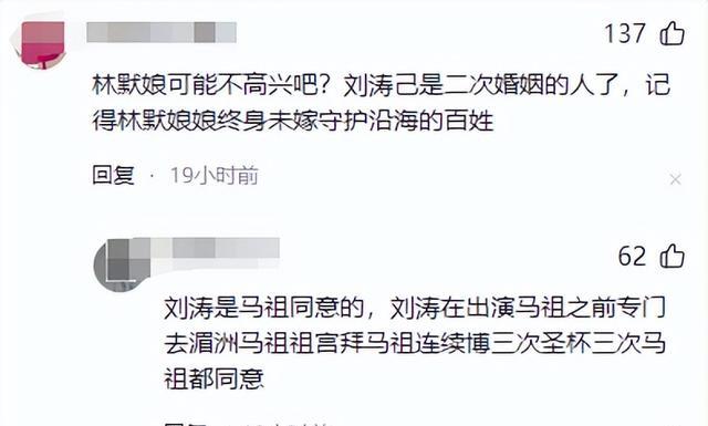 还有福建网友表示,刘涛在别的地方就是个女明星,但在福建她就是“妈祖代言人”。就连自己的父母平时看电视看到刘涛出场,至今依旧会喊她妈祖。