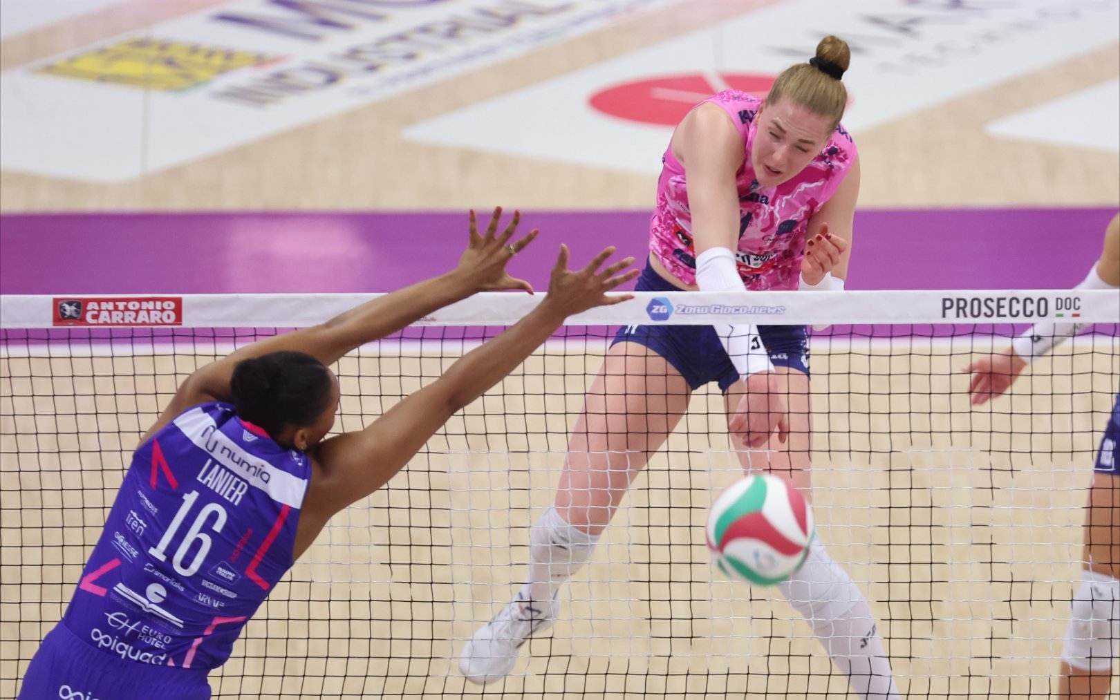 意大利女排联赛第四轮补赛,卫冕冠军科内利亚诺女排对阵米兰女排,不久之前米兰女排结束了对科内利亚诺女排的18连败,拿到了新赛季的首个冠军,所以对于米兰女排来说,也算是战胜了对科内利亚诺女排心理上的恐惧。朱婷是在十月底的时候离队回到河南女排的,在她离开以后,基本上就是西拉作为她的替补去打比赛,好在加比的状态越来越好,所以球队在比赛中的状态也没有过多的起伏,基本上一些关键的比赛也都拿下,MVP也是加比和哈克轮流做庄。