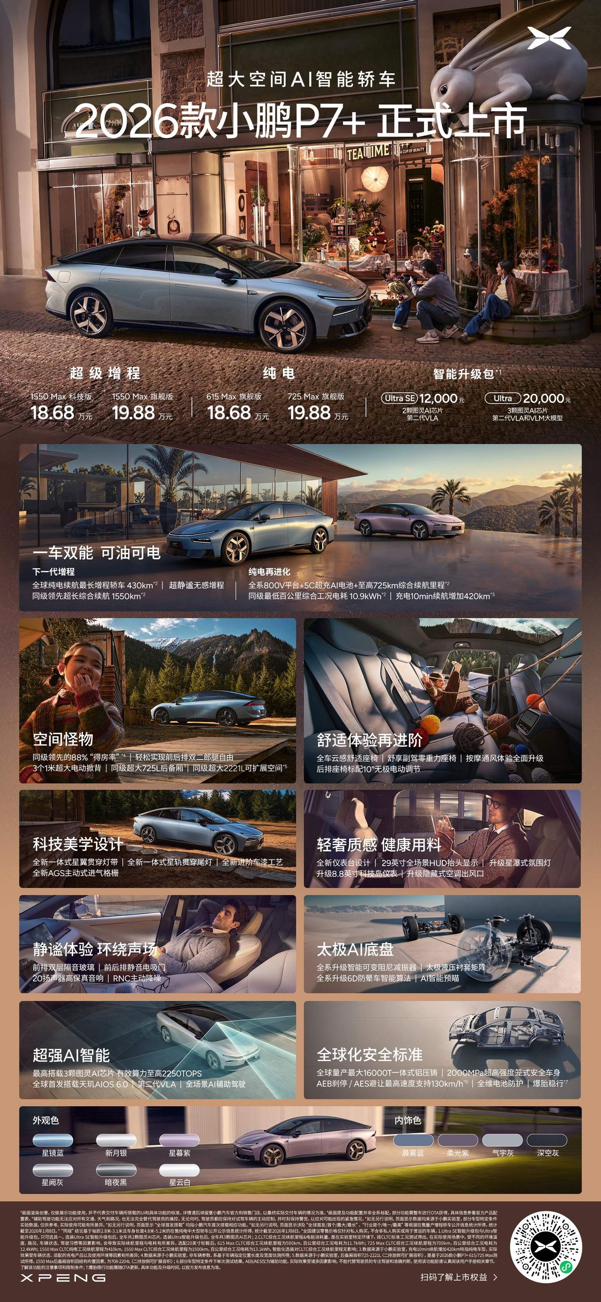 今天小鹏的新品发布会算是把“精准拿捏用户需求”玩明白了!一次性甩出四款硬货:2026款P7+(增程、纯电两种版本都安排了)、G7超级增程版,还有焕新升级的G6和G9。重点是“一车双能”战略正式落地,轿车、SUV全覆盖,不管你是追求操控的通勤党,还是看重空间的家庭用户,基本都能在这儿找到适配款。