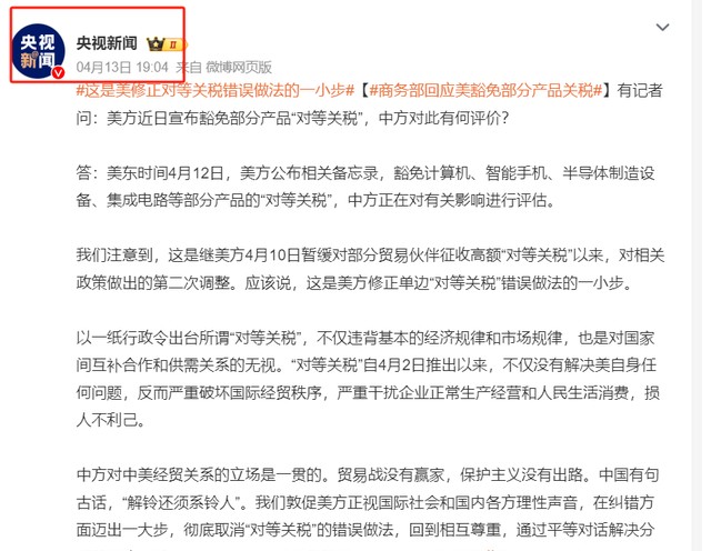 面对美方豁免部分商品的决策,商务部也做出了回应。