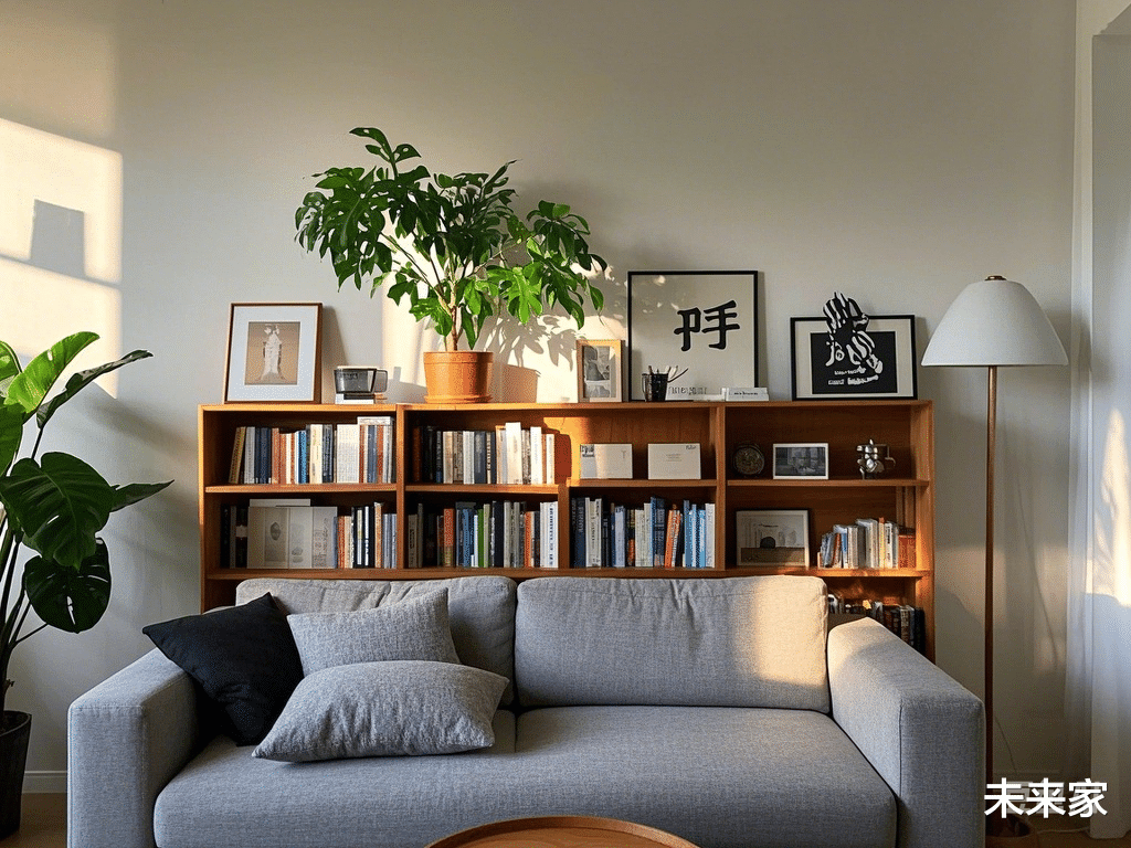 墙面采用浅灰/米白色系,光线反射率提升40%