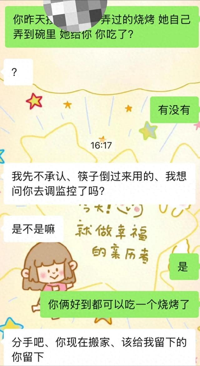 女生在查看餐厅监控后发现,男友与一位她不太喜欢的女同事不仅坐在一起,女同事还将咬过一口的烧烤递给了男友,而男友毫不犹豫地接过来吃了。这个看似平常的举动,却成为压垮这段感情的最后一根稻草。