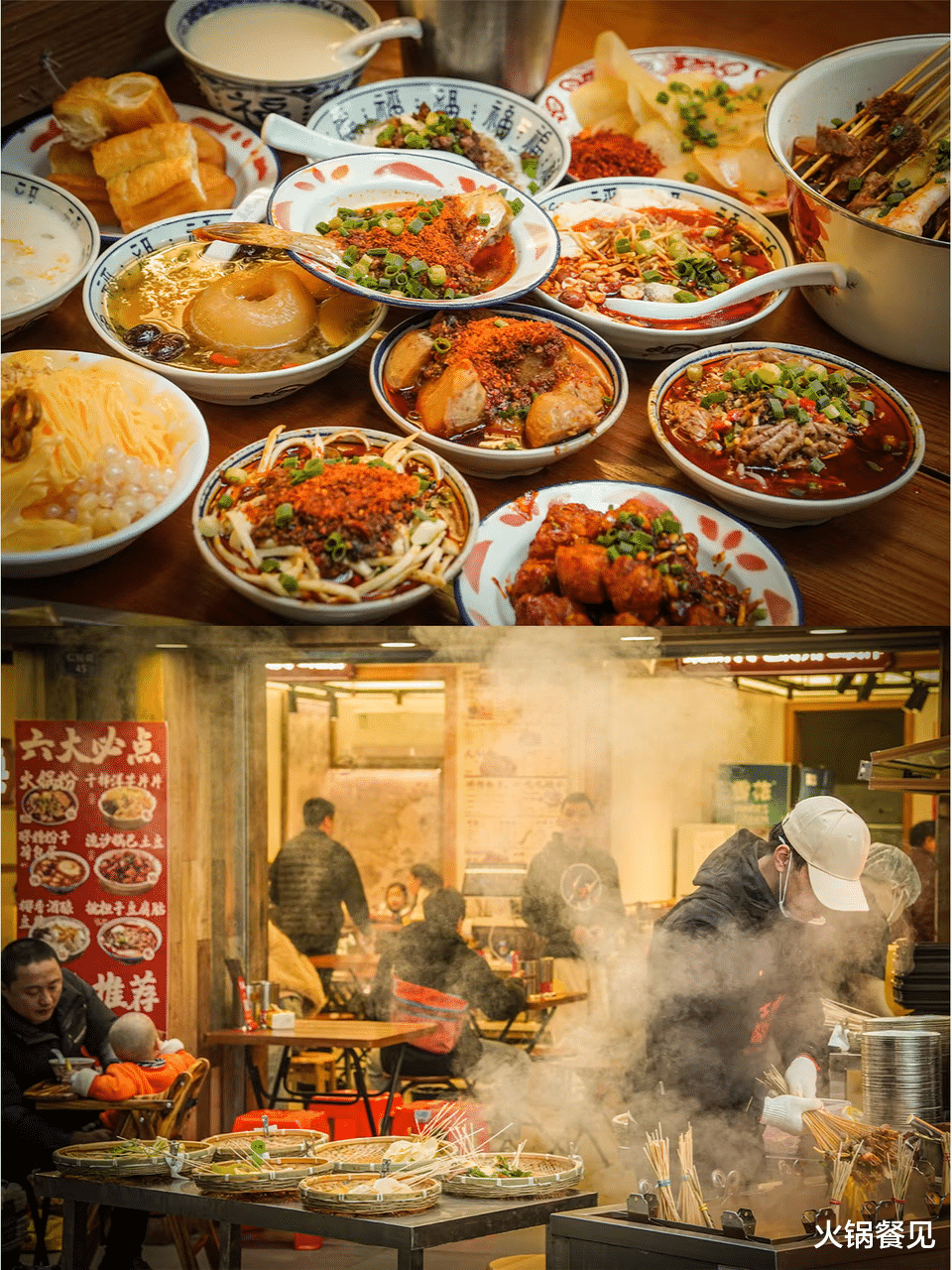 而在特色小吃部分,包括炸洋芋、猪油拌饭、包浆豆腐、干拌凉粉、鸡蛋豆浆等,这些小吃已经被市场验证,像是肥肠节子、蟹柳等则是火锅风味的小份菜,点起来轻松,吃起来没有负担。