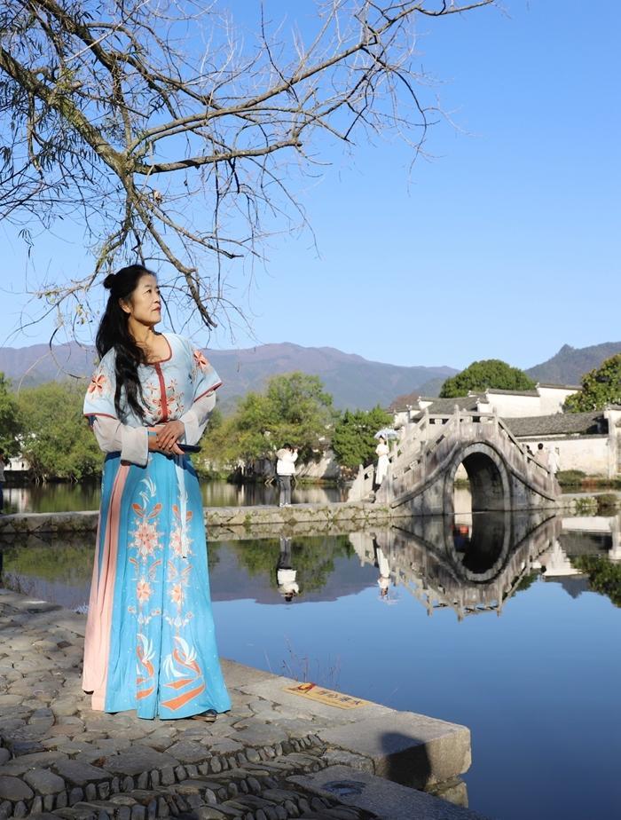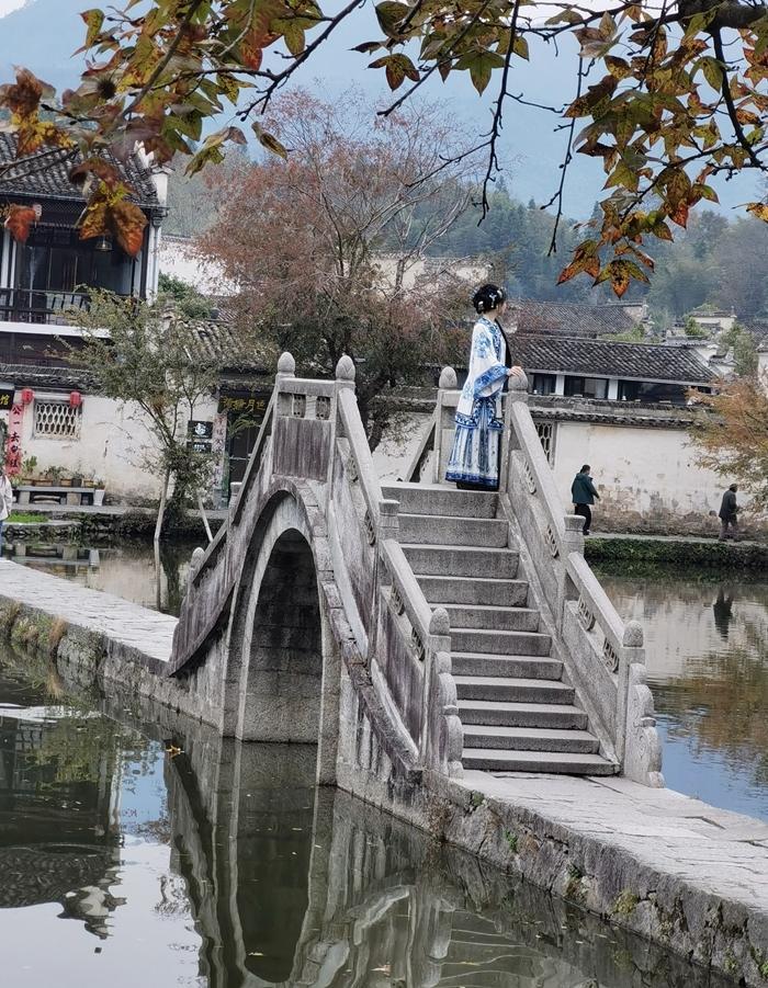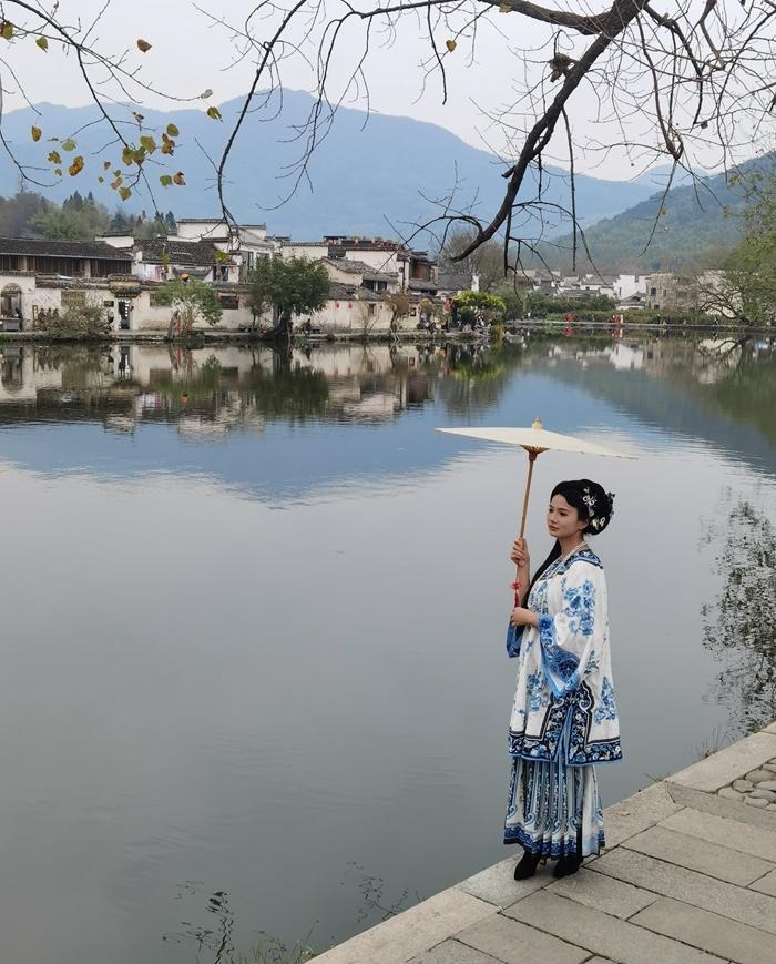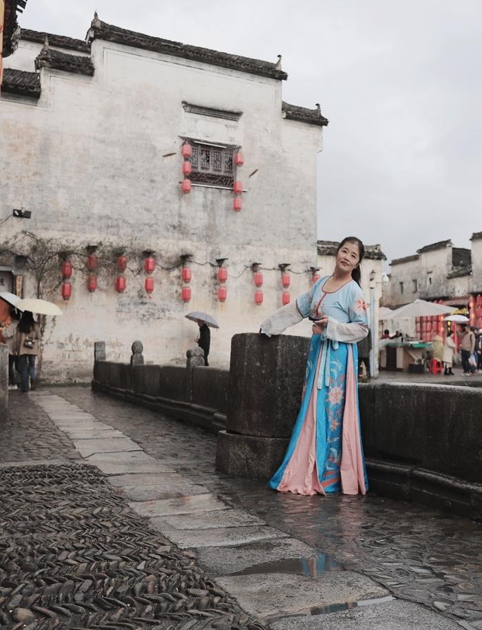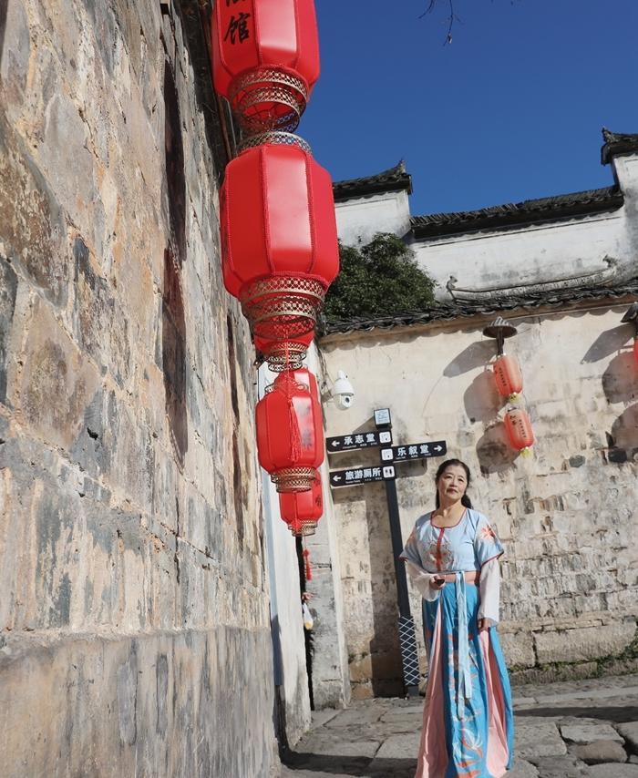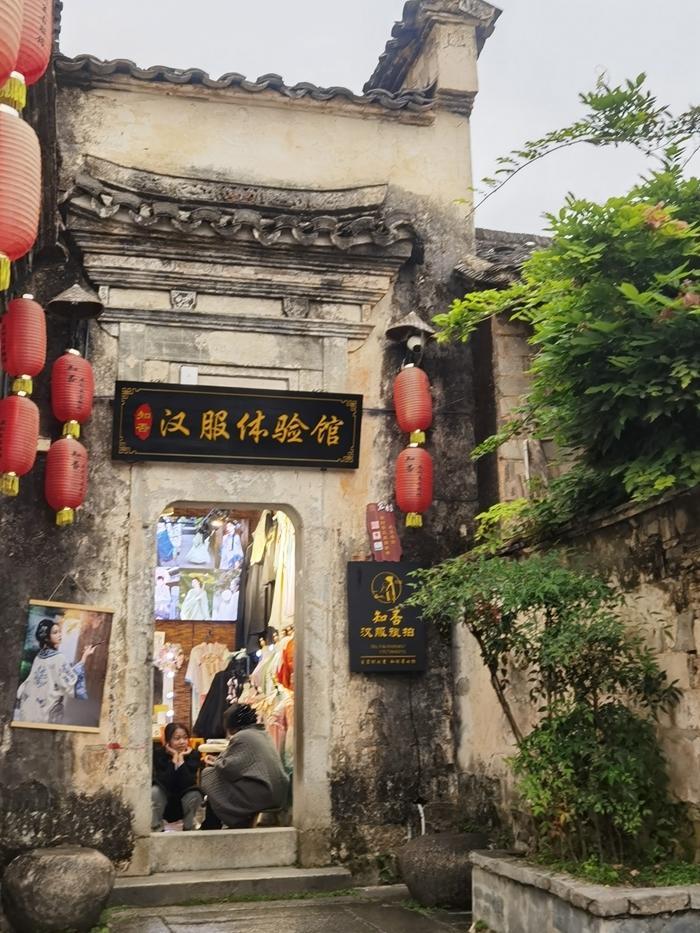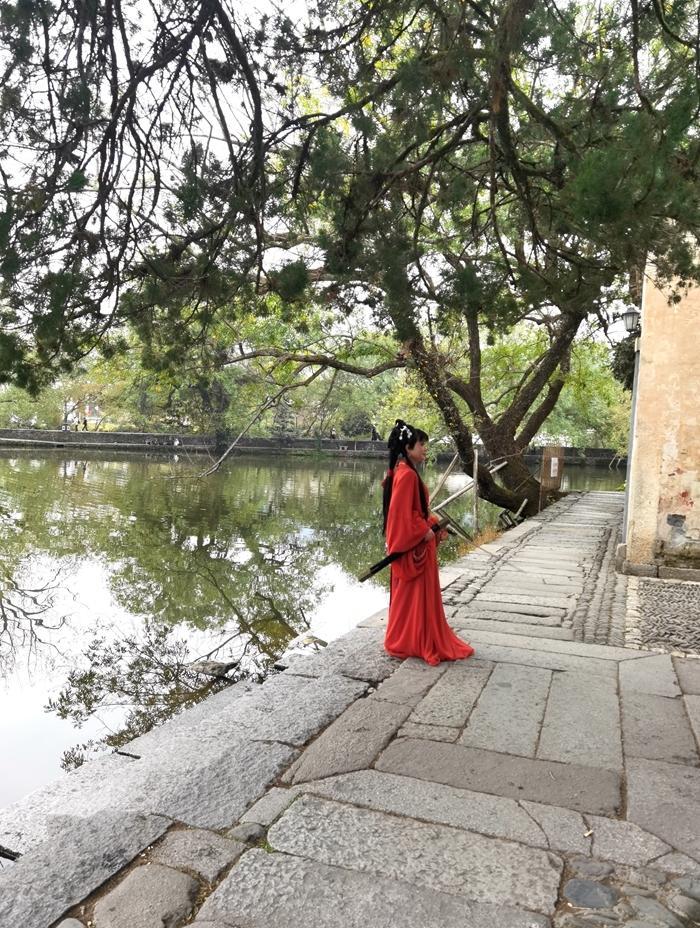 这里的照相馆和汉服出租店比较多,且生意兴隆,宏村到处可见摄影师和穿着汉服拍照的游客。现在旅游,我都是自备服装,来个自拍旅照,随性又省钱。