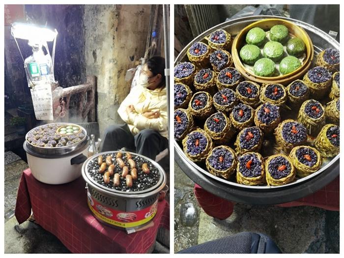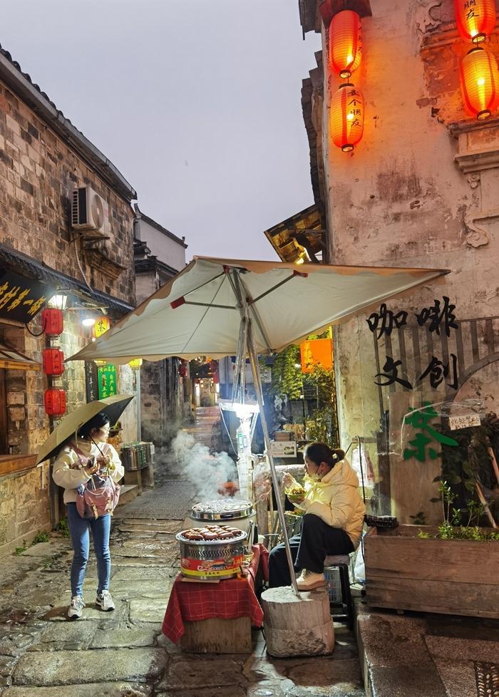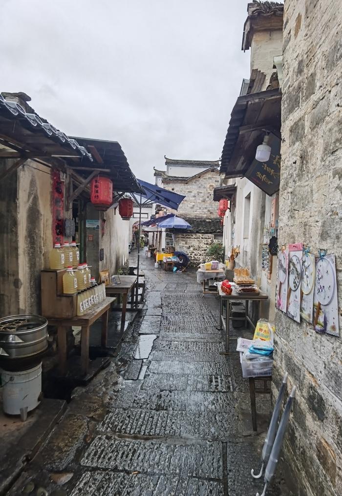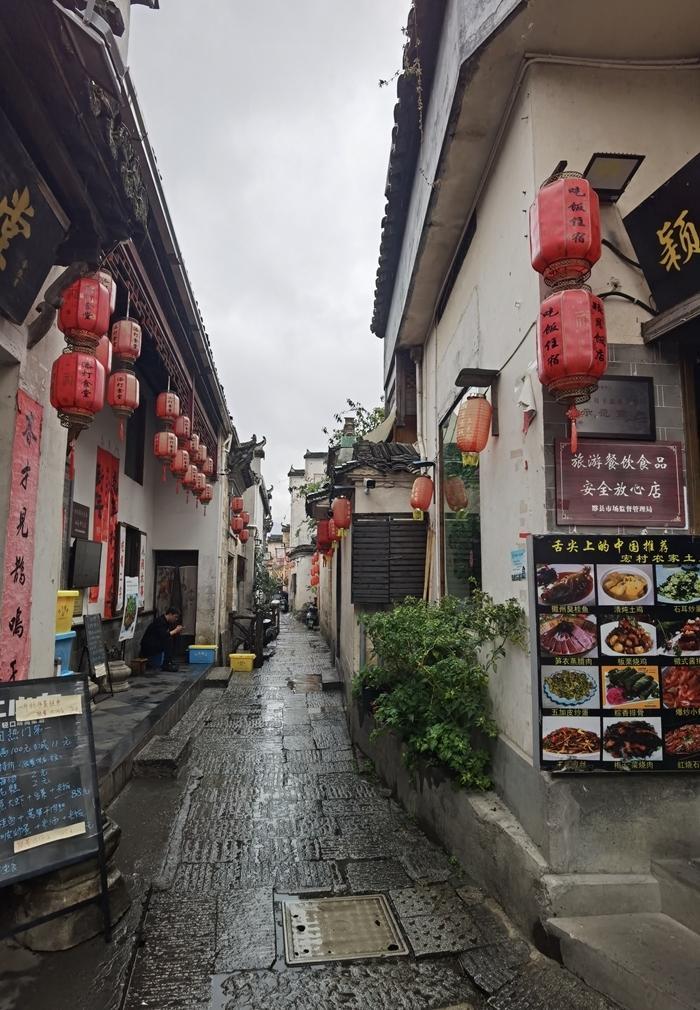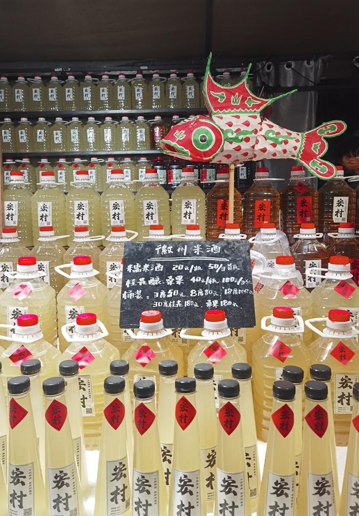 到宏村来旅游,真是不愁吃,宏村到处可见餐馆和饭店,街头巷尾也可见不少小吃摊,还有不少副食品店,卖本地特色糖果和糕点。这里还有一些小酒馆,卖自己生产的美酒。来到安徽,感觉有一个名菜叫臭鳜鱼,几乎是各处景点都有卖的,就是价格有点贵,一条鱼要卖100元左右。我最后决定,还是吃小吃摊吧,吃了毛豆腐、烤梨、青团,梅菜肉烧饼、紫米糕、芥菜肉饺子和烤鸡腿等等,感觉吃的挺爽的。