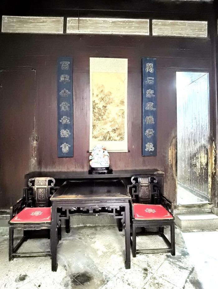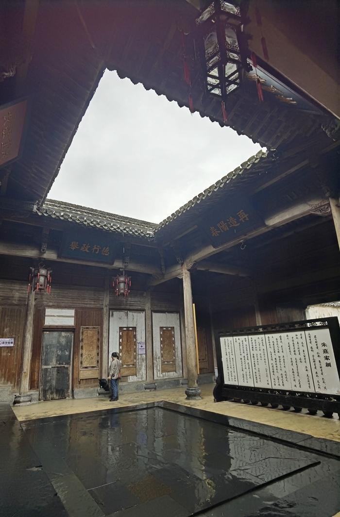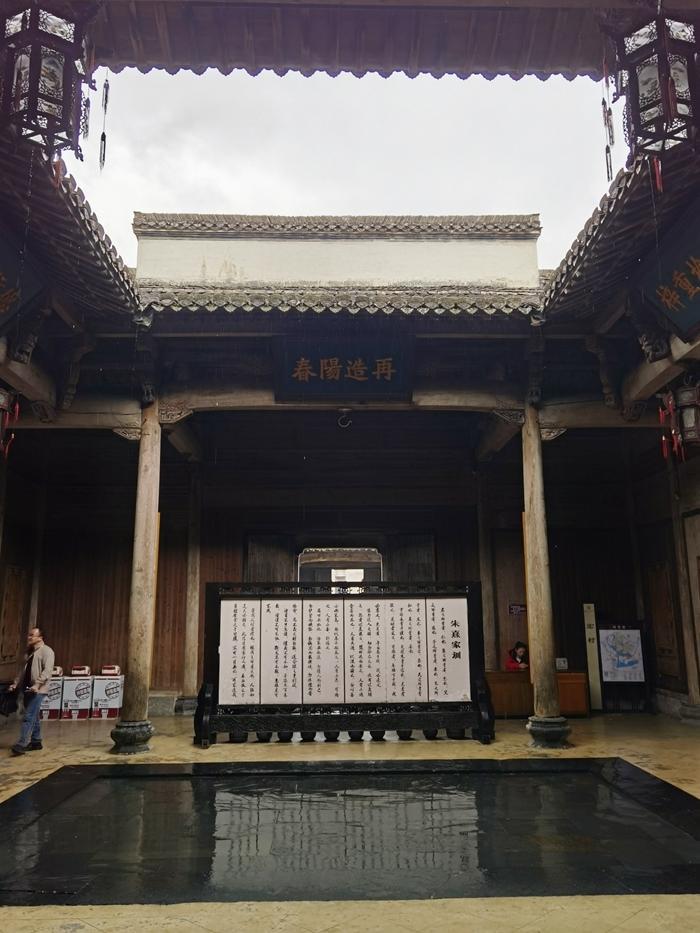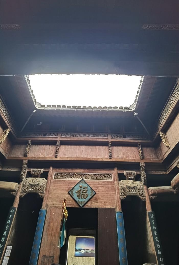 这里的高楼深院都有天井,天井的布局是有深意的,叫做四水归堂。就是在天井的上方开一个四方形的天窗,让雨水从四面屋顶流入中心天井中,形成四方之水会明堂的格局,意为“肥水不外流”,体现了徽商聚财、敛财的思想。