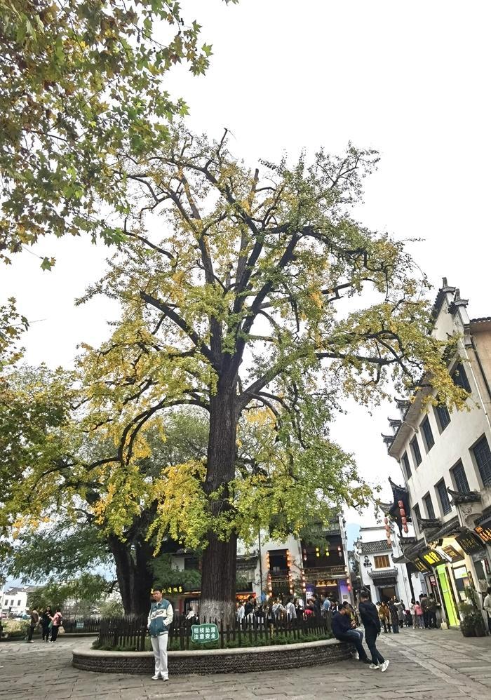 我来到了宏村的村头,村头有两棵500年树龄的枫杨树和银杏树,它们是牛形村的牛角和宏村象征吉祥的“风水树”。