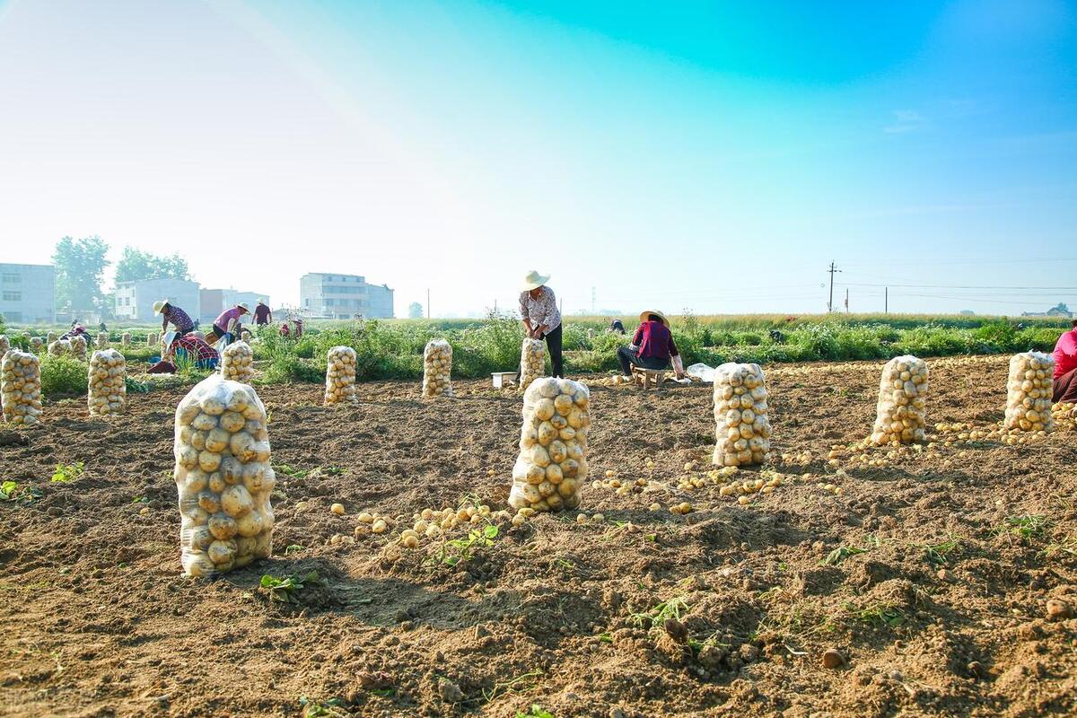 第四,是采收阶段。当土豆植株枯萎,叶片变黄时,就可以开始采收土豆了。采收时,要选择天气晴朗的时候进行,避免在雨后或土壤湿润时采收,以免土豆受到污染或腐烂。采收时,要用锄头轻轻挖开土壤,小心地将土豆取出,尽量避免损伤。采收后的土豆要放在阴凉通风的地方晾干,然后储存起来。