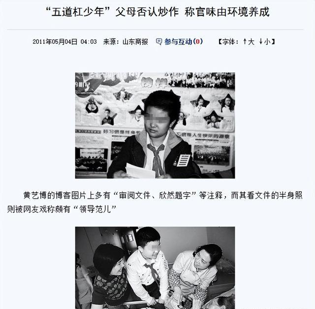 然而,此时他的父母并没有及时调整教育方式,反而依旧过度地展示黄艺博,带着他参加各种社会活动、接受媒体采访。