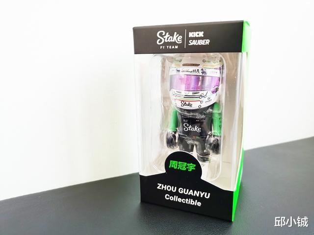 这是KILO出品的一款赛车人偶,主角正是去年F1中国大奖赛的周冠宇。外包装是索伯车队的绿色风格,可以看得出来这是有官方授权的。