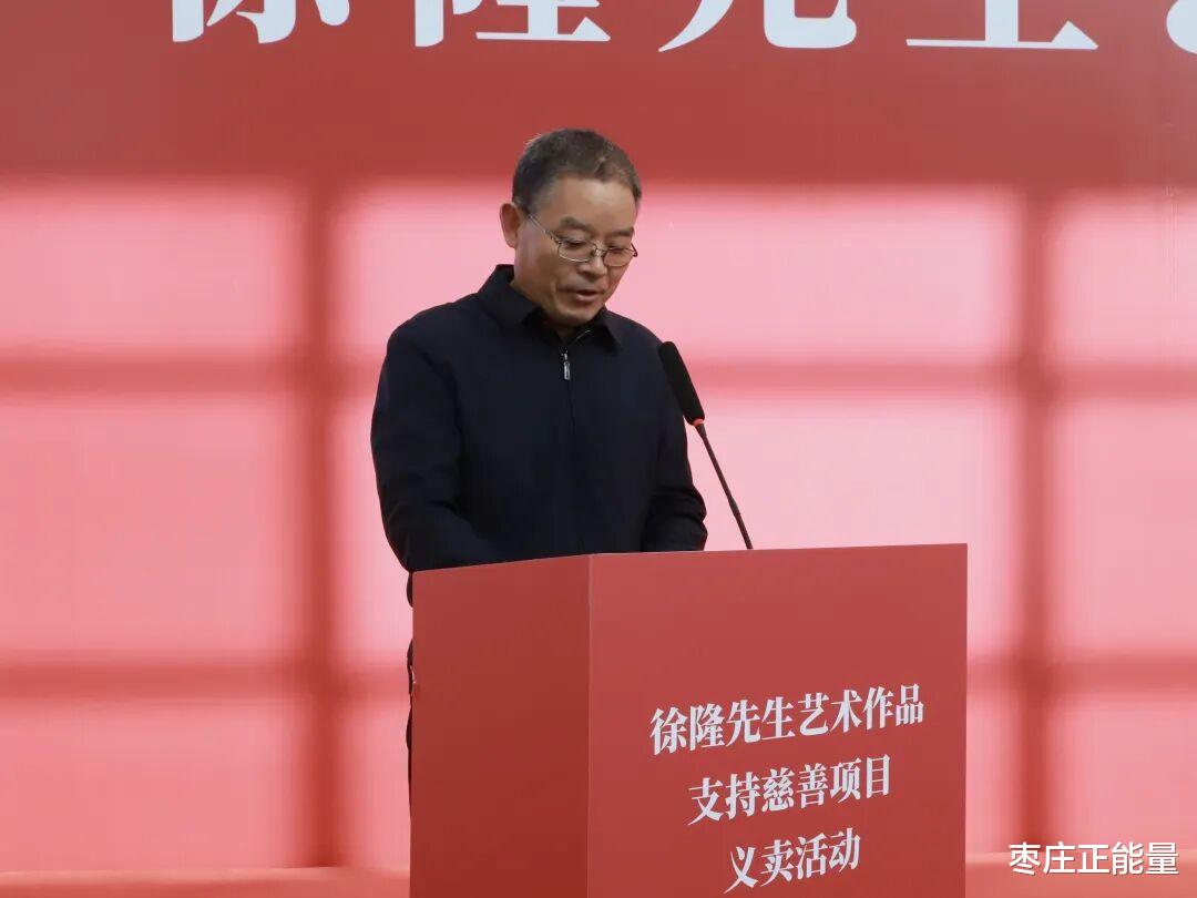 市政协副主席曹力在讲话中表示,徐隆先生的捐赠之举,体现了“艺术服务人民”的高尚情怀,展现了文艺工作者的社会担当。他强调,本次义卖所得将全部用于枣庄市助老、助孤、助学、助医、助残等慈善项目,这些项目贴近民生需求,是实实在在的“民心工程”与“暖心工程”。