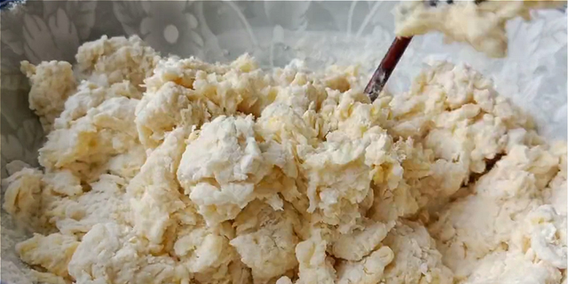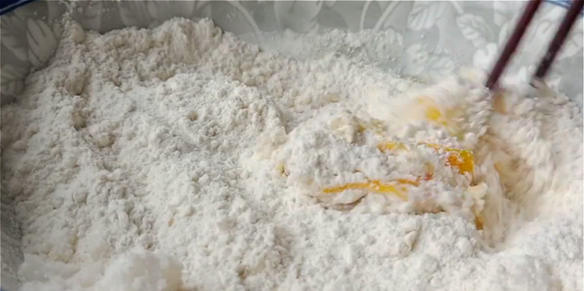 1. 将面粉、盐、切碎的小苏打、酵母粉共同放入盆中,加入适量温水搅拌均匀。