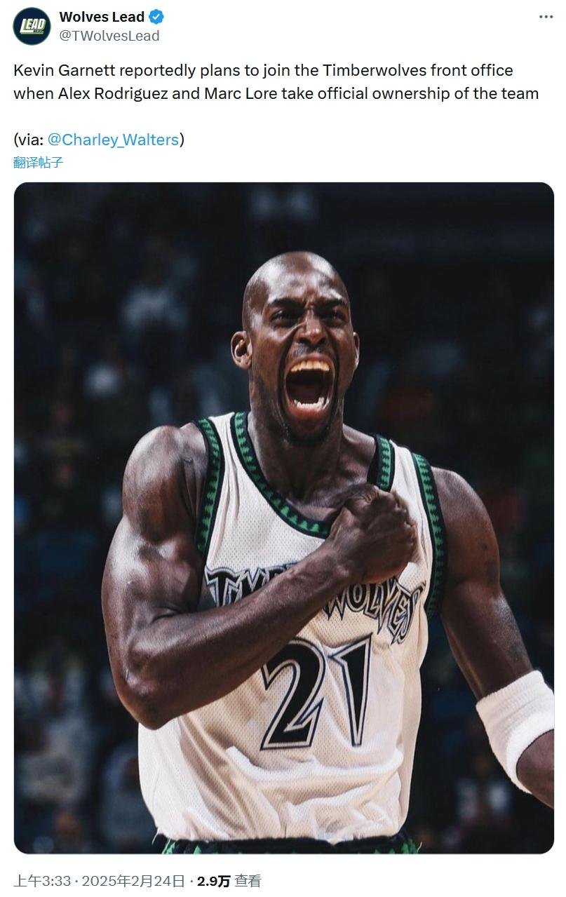 北京时间2月24日,NBA常规赛继续进行。在今天早些时候,据美国媒体报道称,加内特有望在森林狼队所有权更替后加盟球队的管理层。