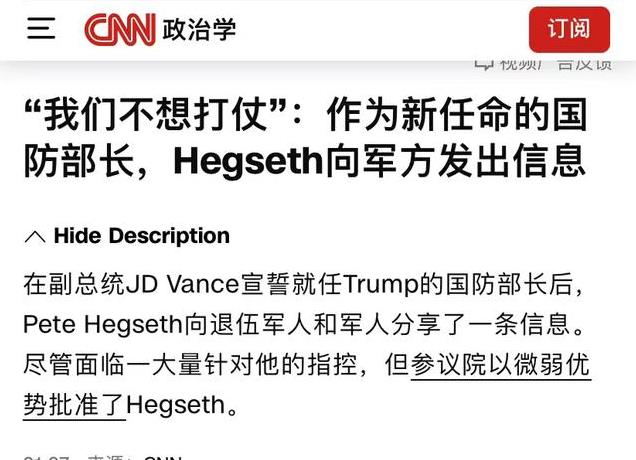 不过从海格塞斯随后对美军发布的一份声明中,能够看出,他是肩负着特朗普改革美军的使命而来的,因此显得信心满满。