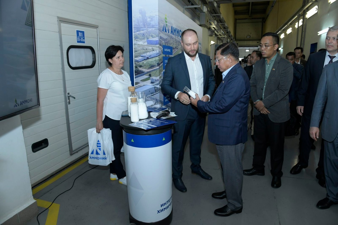 在HIMGRAD工业园区,总经理艾拉特·曼苏罗维奇讲解了该园区的运行,回答了敏昂莱的提问。敏昂莱听取了各部门官员介绍关于综合体企业生产的原材料、家用工贵器具、药品、石油和天然气电子设备、化肥和医药材料的报告。听取报告后,敏昂莱讨论了与缅甸贸易的情况。