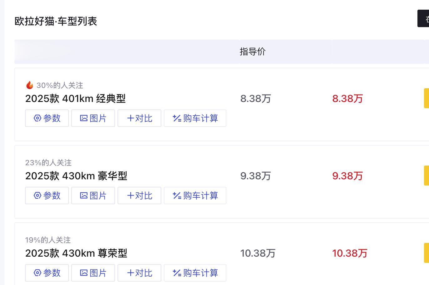 目前好猫有三个版本:401km经典型(限时7.98万起)、430km豪华型(限时8.98万起)、430km尊荣型(限时9.98万起)。