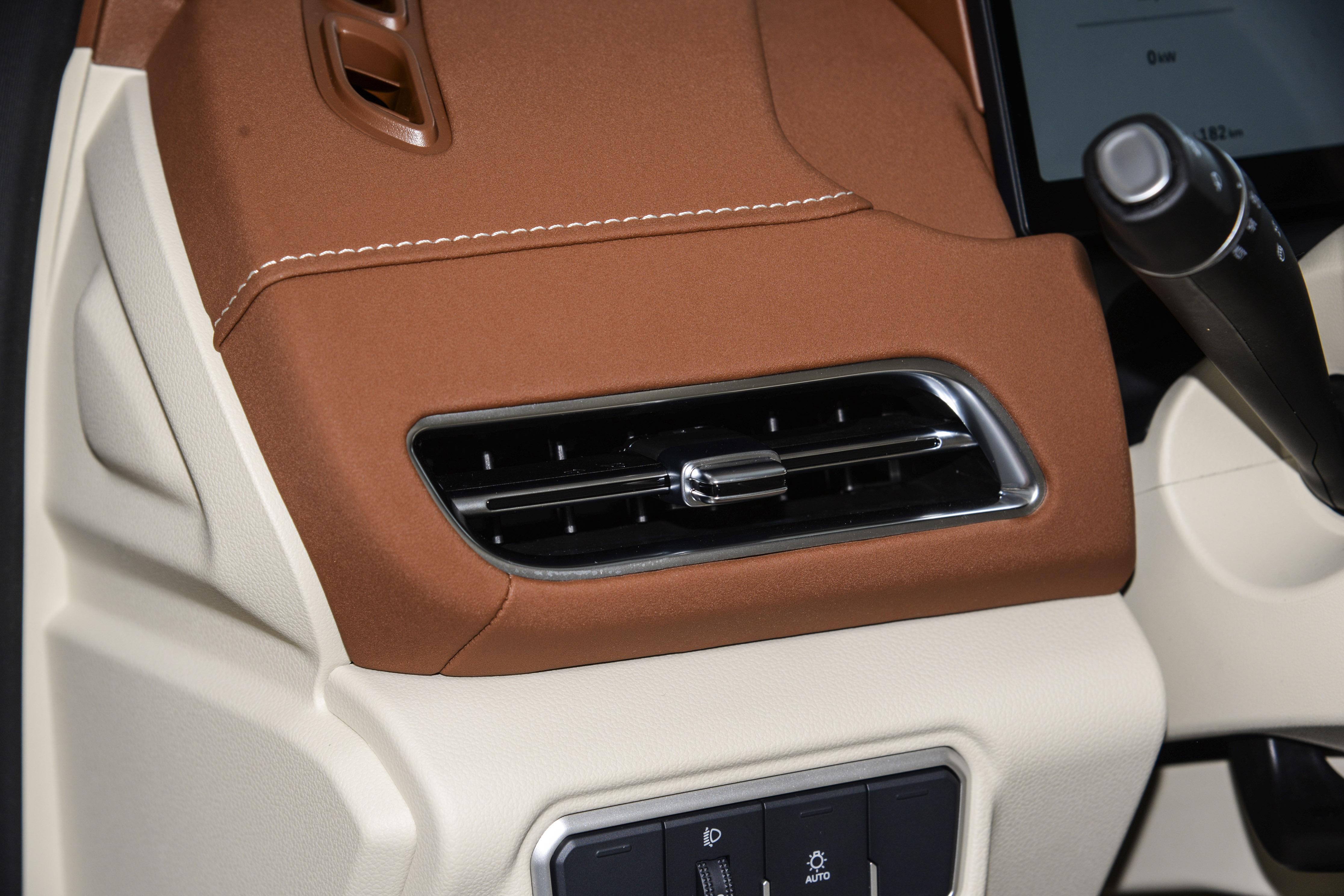 拉开车门,最抓眼的是那块14.6英寸的悬浮大屏,边框很窄,跟老款比简直是两代产品。但更打动我的是那些“看不见”的地方。仪表台上覆盖的是一种叫3D-Mesh的软性材质,摸上去有点像麂皮,温温润润的。副驾前面那块饰板,细看有类似老唱片的暗纹。