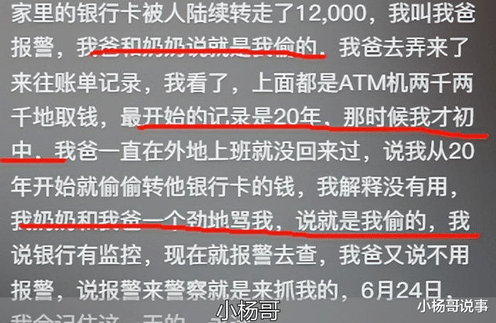 然而,父亲这操作让人傻眼。他不但不去报警,还跟亲妈说这钱是 369 偷转走的。他们家的银行卡密码大差不差,于是父亲就一口咬定自己闺女偷钱,跟大义灭亲似的向奶奶指认 369 的“罪行”。