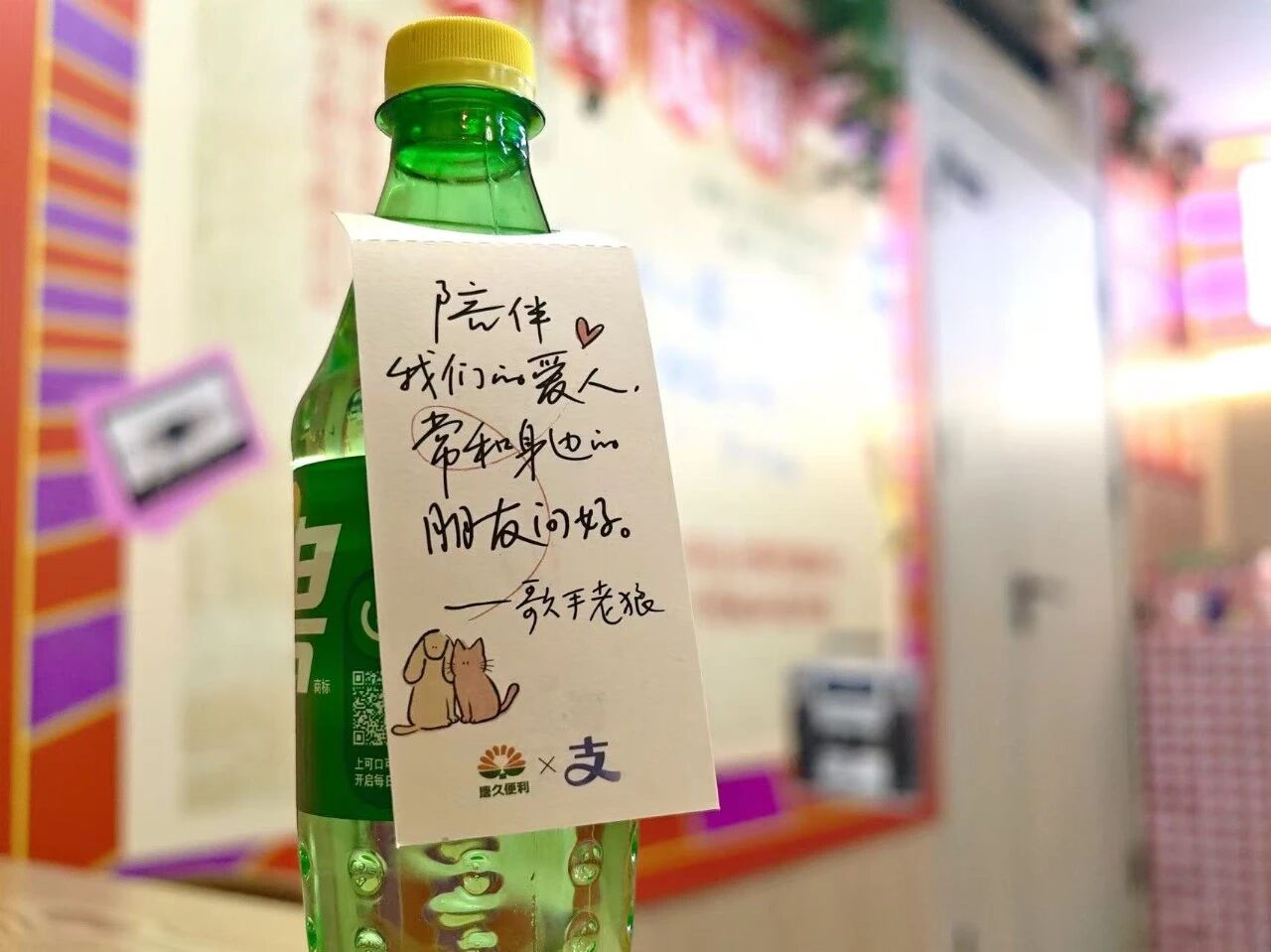 2026年1月22日,支付宝官方账号发布消息,本周开始每周五,在唐久便利店用“支付宝碰一下”购买任意酒品,赠送雪碧与老狼手写金句,“酒搭子”饮料共100万份,送完为止。