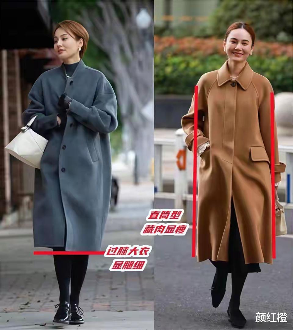 我们也可以选择驼色的直筒版大衣外套搭配上半身裙,脚上穿了浅口的单鞋,再加上一条无痕裤,藏肉又显瘦。
