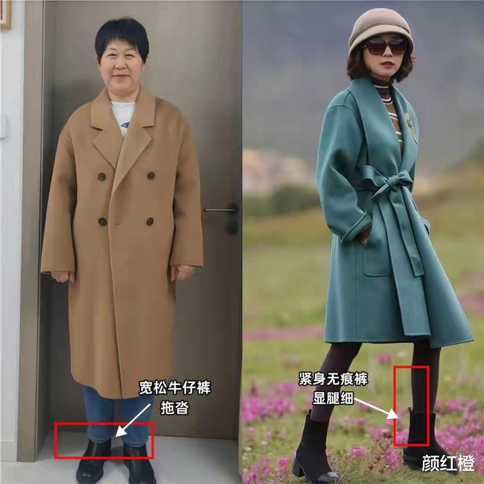 中年女性这时候还蛮推荐大家选择大衣外套来搭配无痕裤的,穿在身上能提升你的气质,同时保暖又舒适。