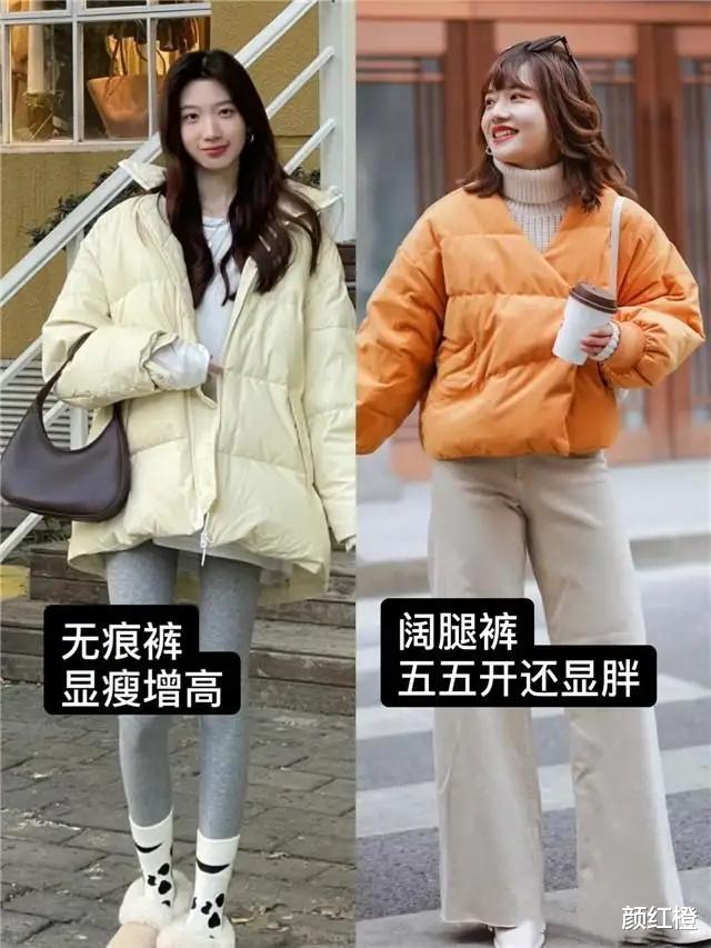 咱们就看下面这三位素人的穿搭对比就可以得出你想要的答案,如果当你真的有点发福发胖,还穿无痕裤,甚至穿有点蓬松的羽绒服,整体效果不言而喻,自然无法穿出活力四射的造型。