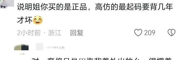 事情一出,引发网友热议。有的网友说:这肯定是正品,高仿的要背几年才坏。