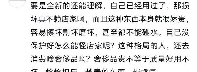 有的网友表示支持店家:自己用过了就不能赖店家了,这些奢侈品很娇贵,要保护好。