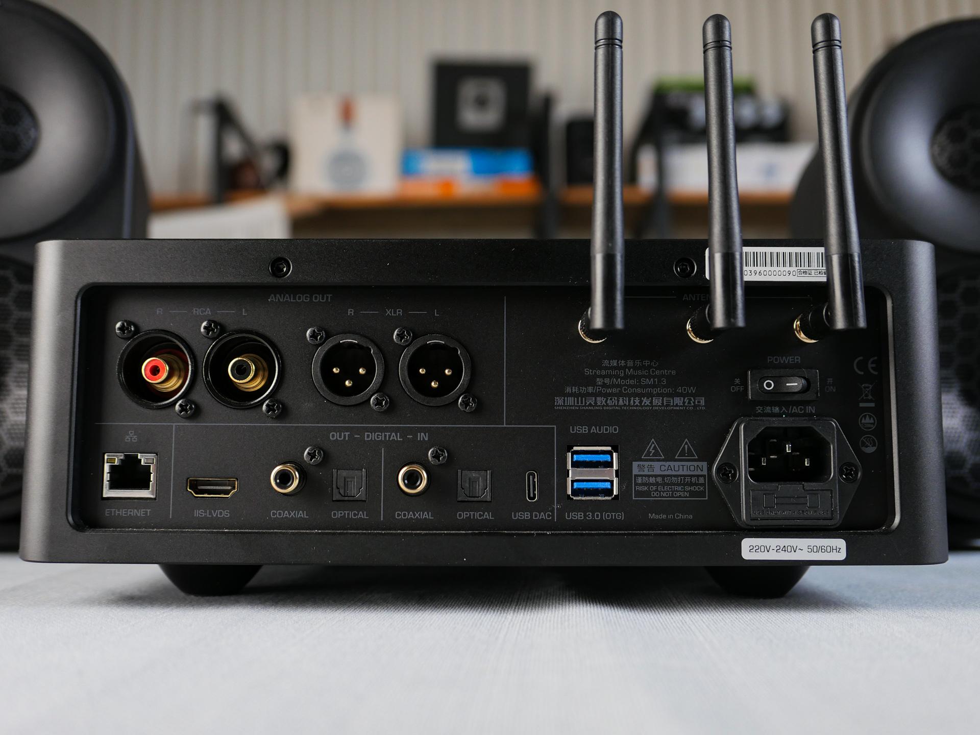 SM1.3支持同轴、光纤、USB数字输入,支持USB、HDMI、同轴和光纤的数字输出,支持RCA和XLR模拟输出(可选择直通或通过音量控制),支持6.35mm耳机输出;是一台全功能网络流媒体音乐中心,也可以作为纯粹的数字转盘,或是解码器来使用;