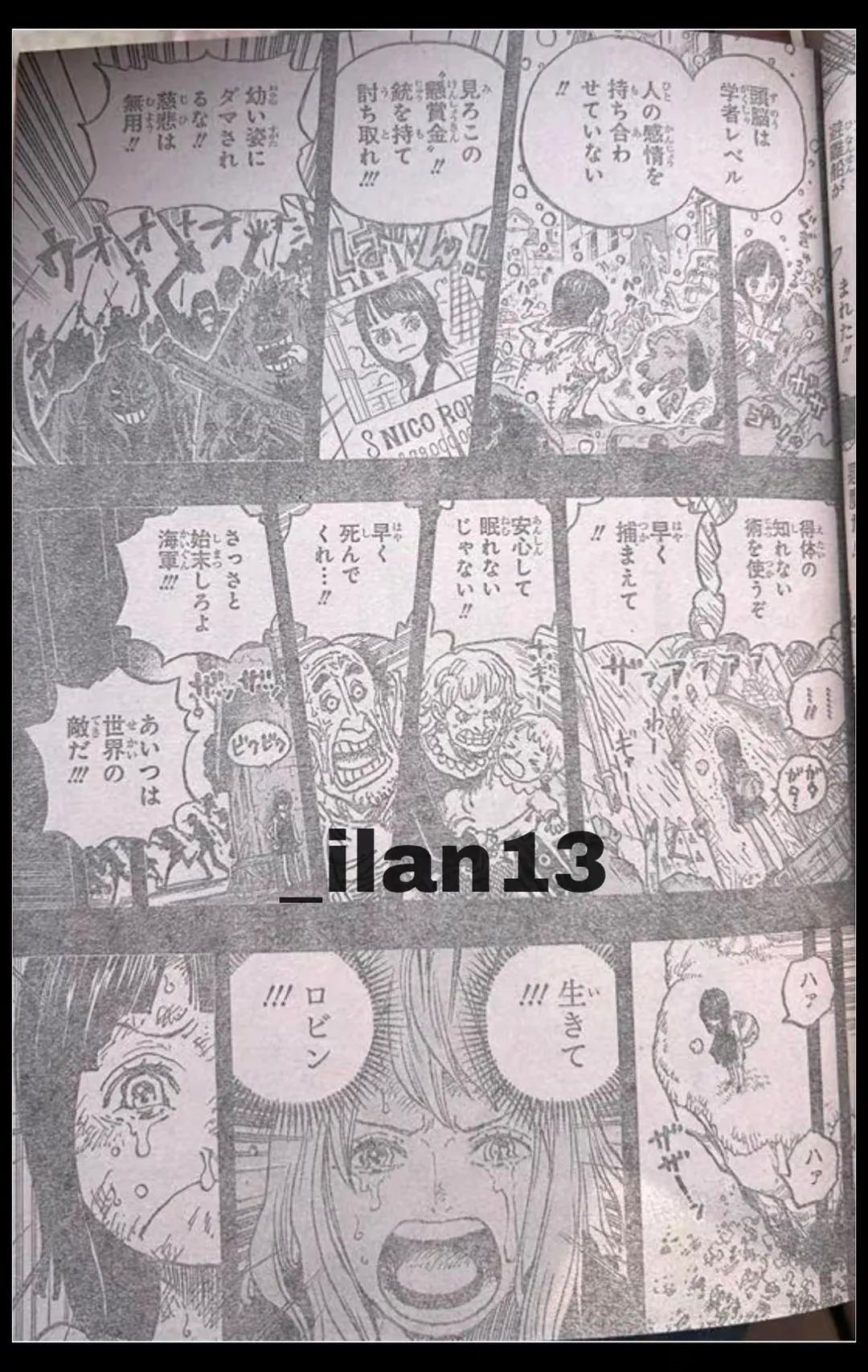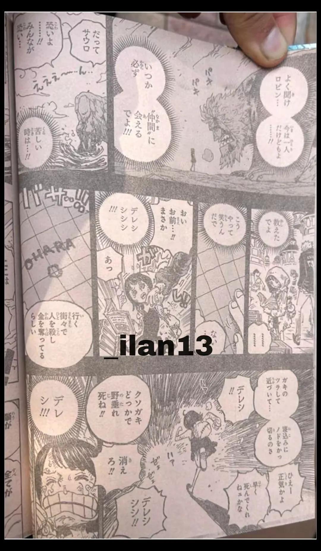 漫画最新一话的标题是夸夸我,这个标题是指罗宾要萨乌罗夸夸自己,扉页小故事是小玉被抓住了,那头狮子击败了马美,大和准备营救小玉。在22年前,屠魔令摧毁了奥哈拉,CP0知道罗宾逃跑了,他悬赏通缉罗宾,海军和CP0都在抓捕罗宾。罗宾独自一人逃跑,流落在街头,很多人都想要抓住罗宾,她站在悬崖上准备自杀。