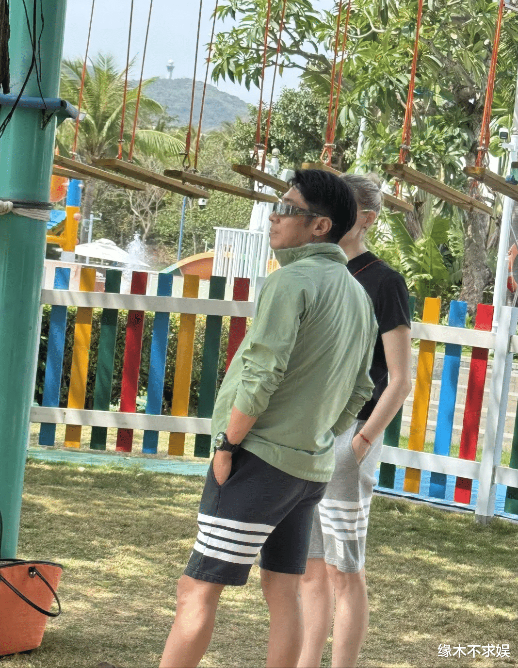 当日,撒贝宁身着绿色上衣搭配黑色短裤,充满活力;李白则身着同款黑色短裤,搭配简约的黑色上衣。尽管李白未露正面,但她高挑的身材与白皙的肤色在人群中格外醒目,与撒贝宁形成鲜明的肤色对比。