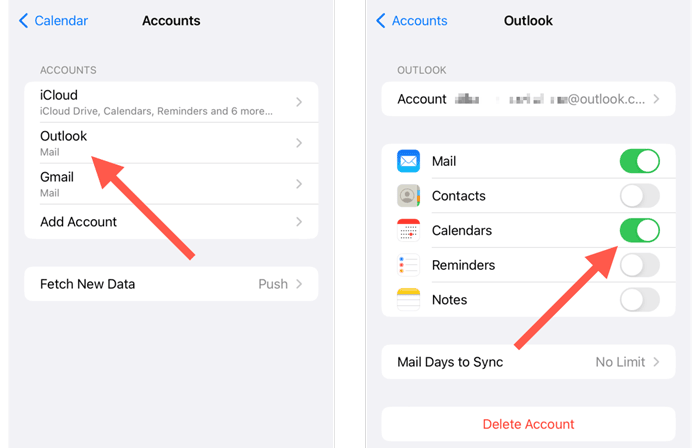 步骤1:请在iPhone上打开“设置”应用,然后选择“日历”选项。然后单击“帐户”>“添加帐户”以将您的Outlook帐户导入iPhone。