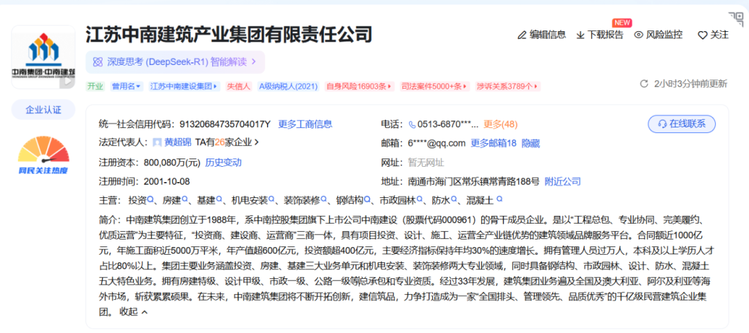 悬赏公告中前两家公司的法定代表人为陈锦石,其在1988年就创立了中南控股集团,这家以工程建设等为核心的多元化企业集团至今已有37年历史。37年来,其以长三角经济圈为中心,业务遍布全国11省20多市,并延伸拓展至美国、澳大利亚、日本、俄罗斯、新加坡、沙特、阿联酋、科威特、阿尔及利亚、毛里塔尼亚、越南、关岛等境外市场。