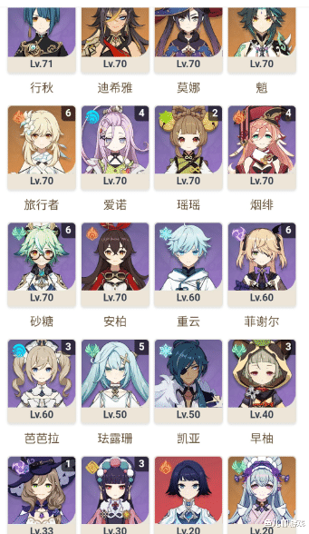 低配版:菲谢尔(4 星)+ 芭芭拉(4 星)+ 砂糖(4 星)+ 伊涅芙 / 爱诺(挂件)