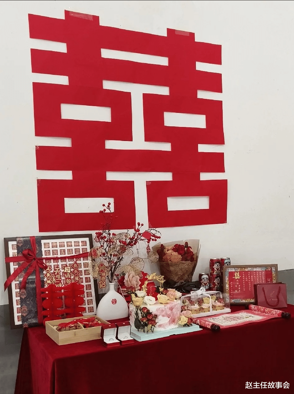 这个被子里包裹的红枣儿和栗子,意思是让她早生贵子。