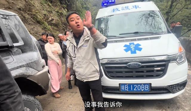 等大洋驾驶车辆到了瀑布景点后,他突然发现刚才那辆不断鸣笛催促让行的救护车也在这里停下。