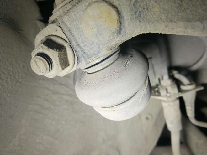 所以对于车主的这个问题,找到检查点就准备把车举起来检查维修,但是在检查的过程中,没有发现任何球头保护套的破损,也没有任何球头的摆动,也就比较奇怪了,按说车主的这个问题是比较频繁的,不是偶发故障,所以应该是可以检查出来的,但是检查半天确实没发现问题根源在那,所以建议车主拉上我在颠簸路面试车。