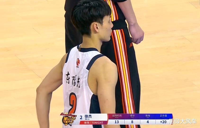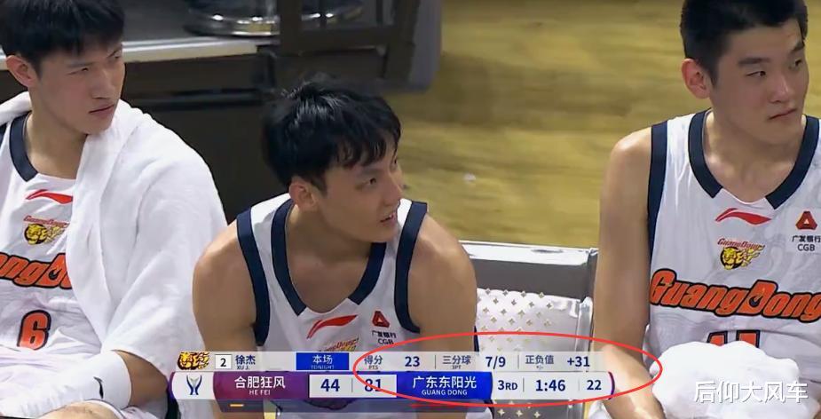 本节广东队又是没有悬念的碾压,合肥无论是收缩篮下还是扩大防守范围,都无法限制住广东队的进攻,只因他们根本防不住徐杰,徐杰在第三节重新接过球权后直接化身库里,前半节飚进2记三分,后半节一人再连中3记三分,单节8分钟独砍15分提前下班。