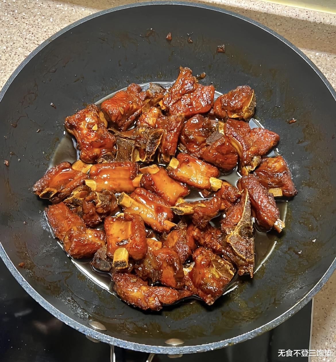 重头戏来了,炒糖色。这是决定排骨色泽红亮、味道醇厚的关键一步。锅中放入少许底油,油热后下入冰糖,转小火慢慢炒化。当冰糖完全融化并变成琥珀色的泡沫时,迅速下入腌好的排骨,快速翻炒,让每一块排骨都均匀裹上糖色。这一步动作要快,避免糖色炒过头变苦。