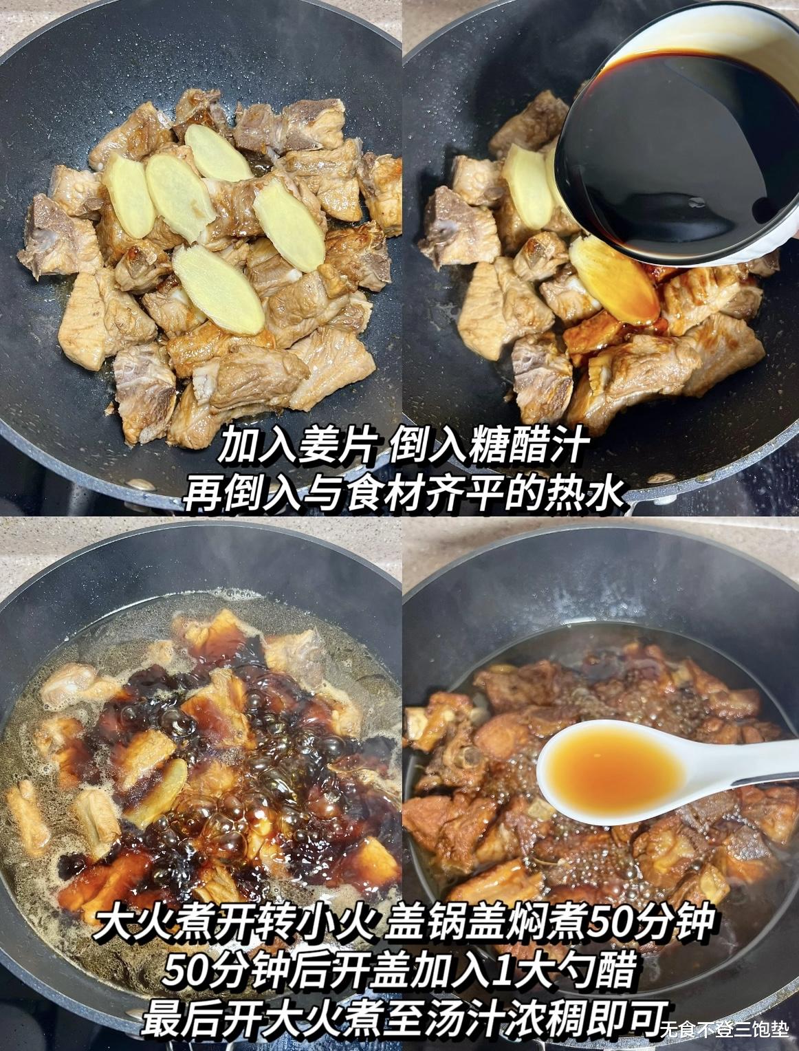 排骨炖烂后,就是决定口味的“点睛之笔”——加醋。这时候,我们要加入一勺香醋和一勺米醋,转大火收汁。为什么要后放醋呢?因为醋加热时间过长会挥发,后放能保证成品酸甜适口,醋香浓郁。汤汁收得差不多时,淋入少许水淀粉勾薄芡,让酱汁紧紧包裹在排骨上,撒上白芝麻和葱花,即可出锅。