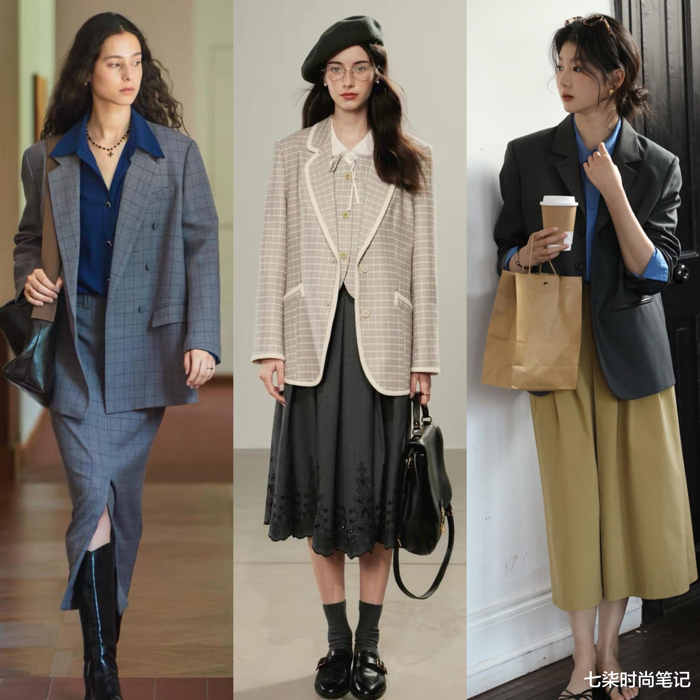 卡其色西装内搭白衬衫,减龄不失稳重,天冷不想露腿,裙子下面可以搭踝靴,又美又飒,显瘦时髦又保暖。
