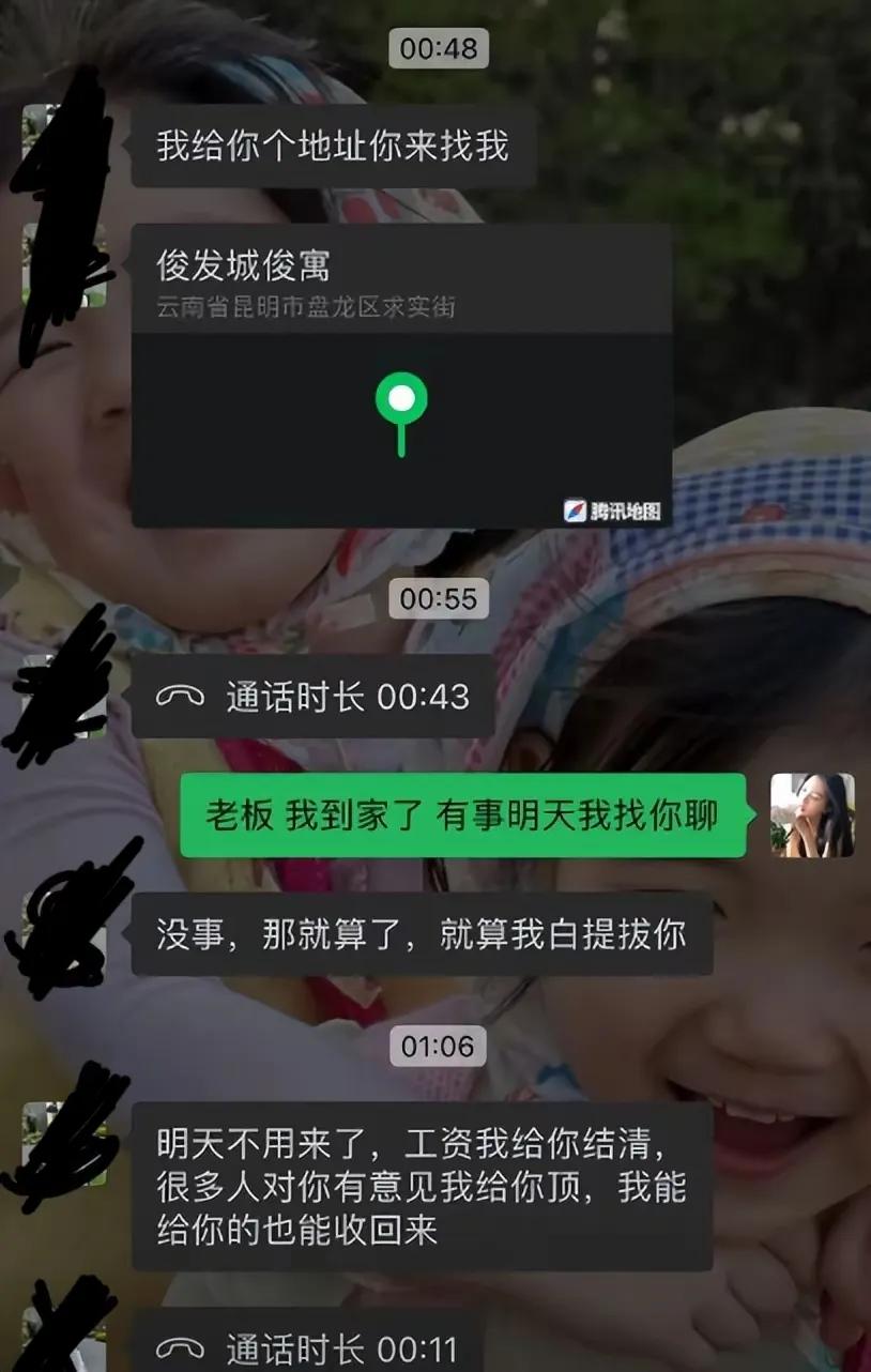 但事情并未就此结束,林总随后发地址给温女士,要求她去找自己,在遭到温女士拒绝后,竟说出“白提拔你”这样的话,并且第二天就通知温女士不用来上班。温女士收到 1210元工资的那一刻,心中满是委屈与不甘,她坚信自己是遭遇了潜规则才被如此不公平地辞退。